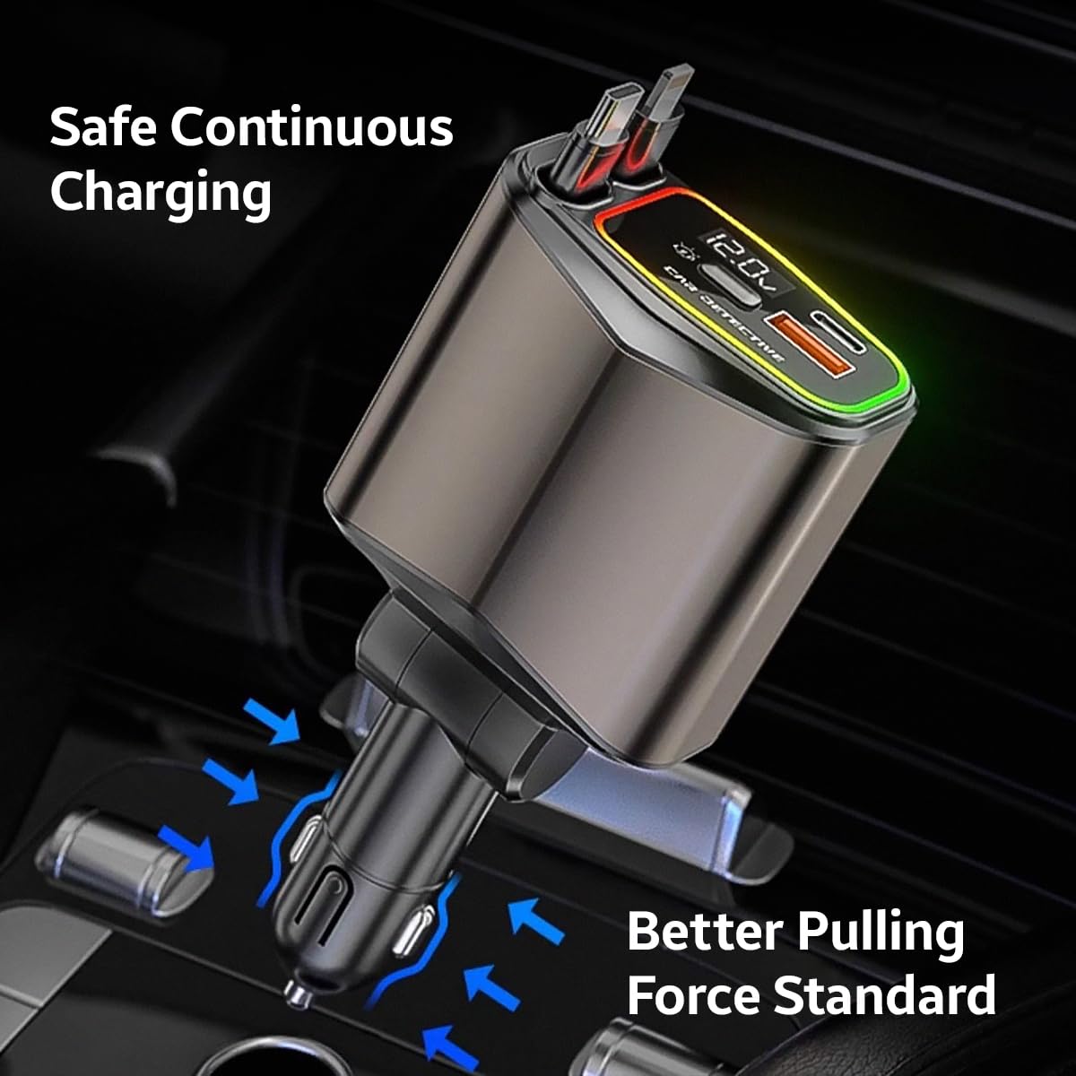 • Retractable Cable Design: Extends up to 2.6 ft and retracts neatly to keep your car clean and wire-free.