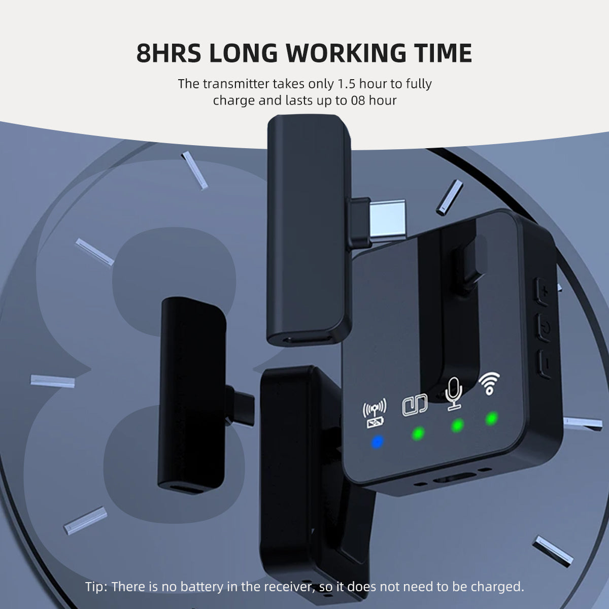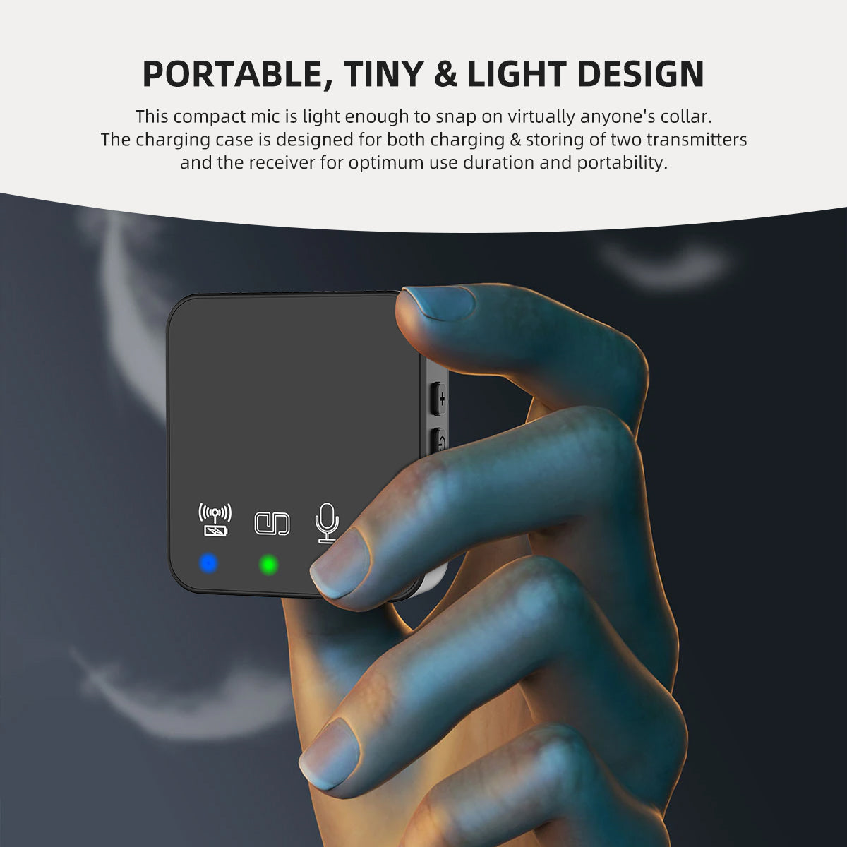 - Contact-coupled charging drawer for quick pairing, compatible with Lightning and Type-C connectors. Fully compatible with USB Type-C on Android devices. Ideal for sports, interviews, vlogs, with budget-friendly and wide compatibility.