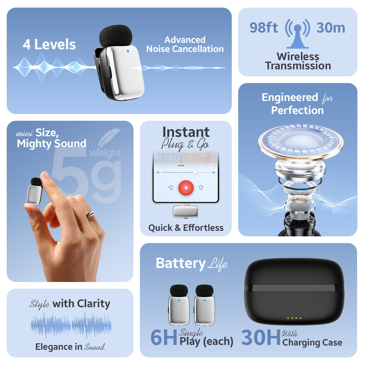 The VOOK MiniMic is designed for quick, effortless recording with a super-compact clip-on design. It attaches instantly to clothing and captures clear voice audio with its built-in high-sensitivity omnidirectional mic. Its lightweight build makes it ideal for reels, vlogs, interviews, classes, product demos, and daily mobile content creation.
