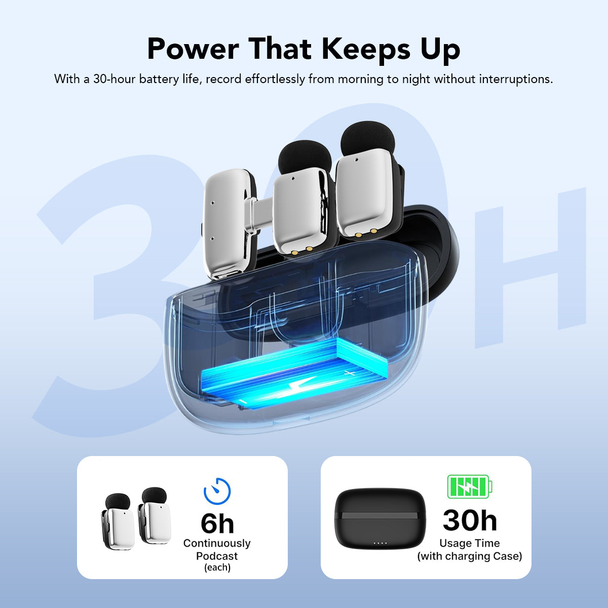 30Hours Long Battery Backup + Quick Recharge